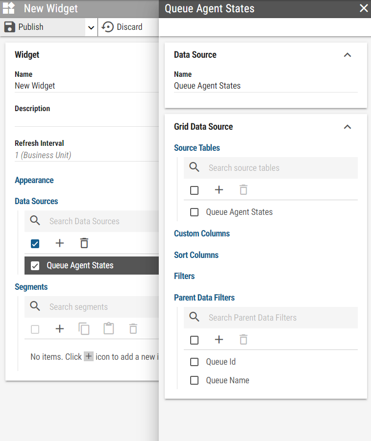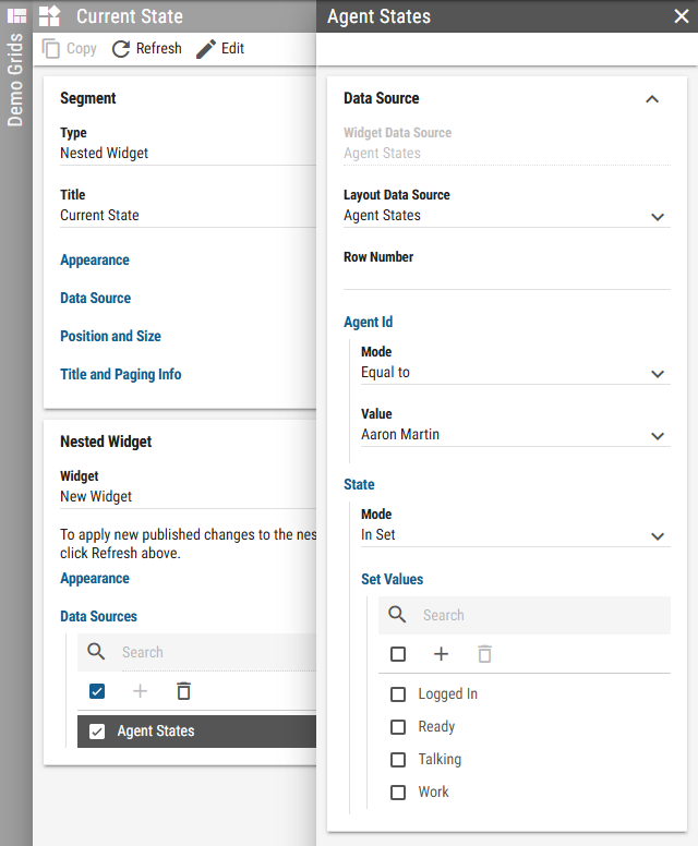 To achieve this, widget has to have layout Data Source created. Each Parent Data Filter configured in the data source is available in the layout where the widget is used as a filter. Although containing the same nested widget, each segment can be filtered independently.